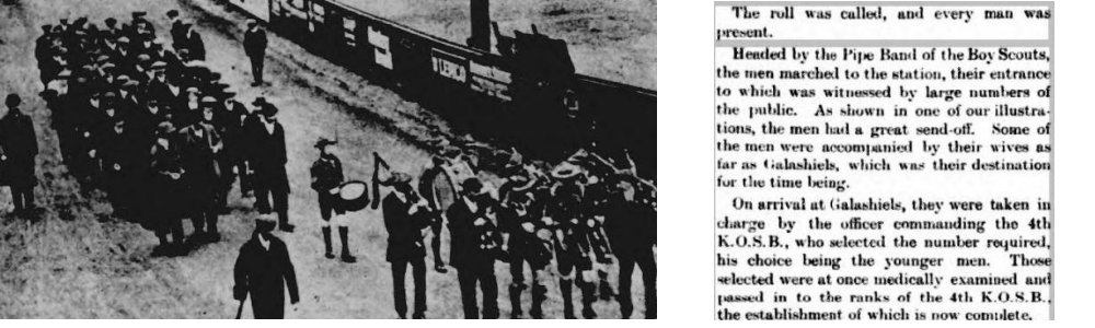 We had previously thought that the first mention of a Pipe Band was in 1917 (as the Hawick Boy Scout Pipe Band) but the following items have since come to light from 1914, and it is clear that the band was established before then.